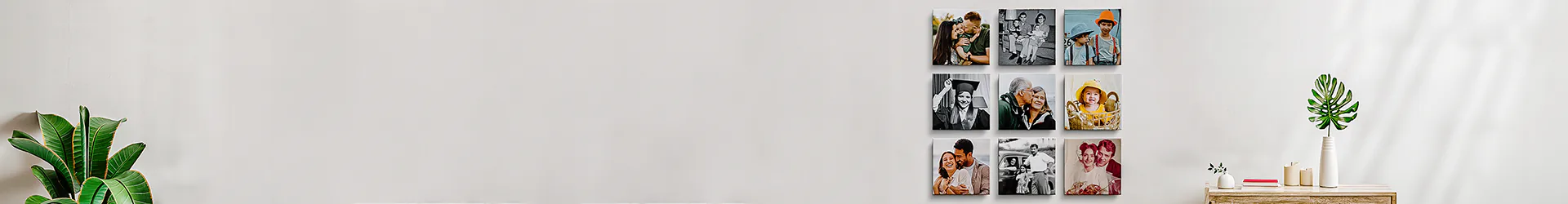 Our photo mosaic canvas print collection features a range of styles and sizes to suit your preferences. Choose from our 4-piece (10" x 10"), 6-piece (10" x 10"), or 9-piece (10" x 10", 12" x 12", 16" x 16", and 20" x 20") mosaic canvas prints.