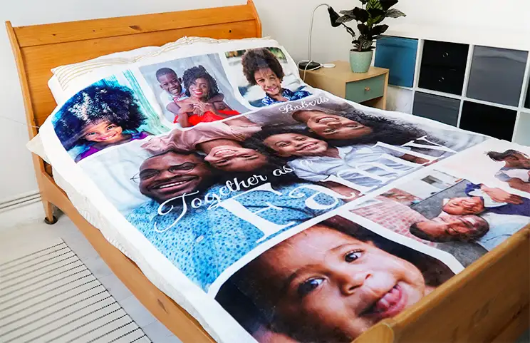 Memories are priceless, and what better way to cherish them than with our custom blankets. These unique keepsakes allow you to surround yourself with your fondest memories, creating a tangible way to preserve and celebrate life's special moments. Whether it's a family portrait, a beloved pet, or a favorite holiday spot, our photo blankets bring your memories to life in a whole new way. With over a decade in custom blanket printing, Printerpix is your go-to destination for creating a photo blanket that’s guaranteed to last a lifetime.