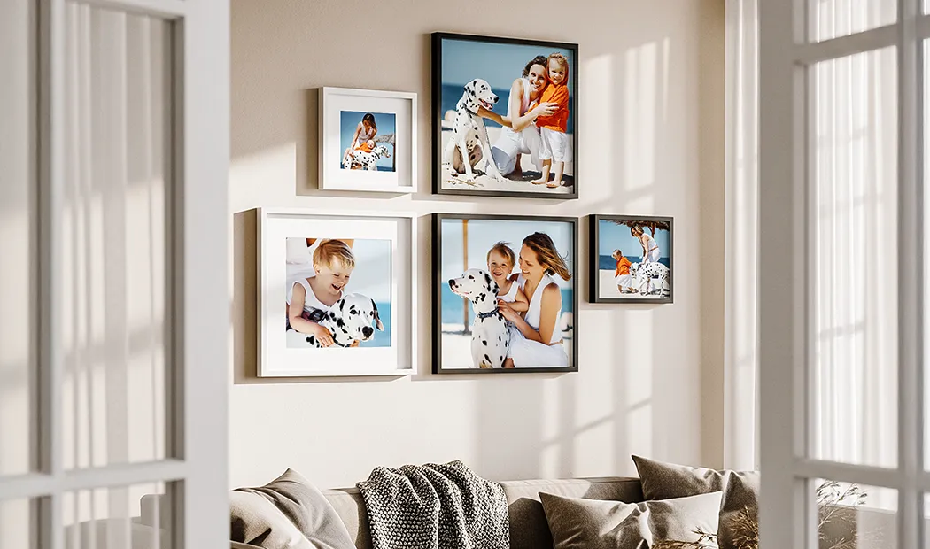 Create your perfect gallery wall without tools or wall damage. Our innovative framed photo tiles combine premium printing quality with hassle-free hanging—just peel, stick, and enjoy your memories beautifully displayed.