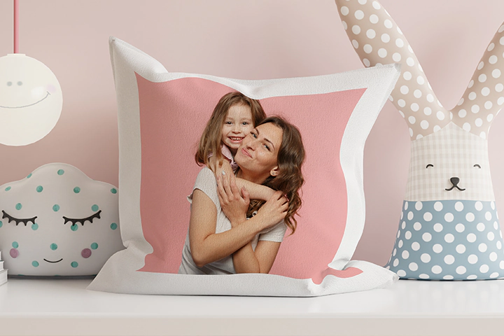 • Nursery: Design an adorable personalised pillow featuring the baby's name, birthdate, or cute animal prints to create a cosy nursery environment.