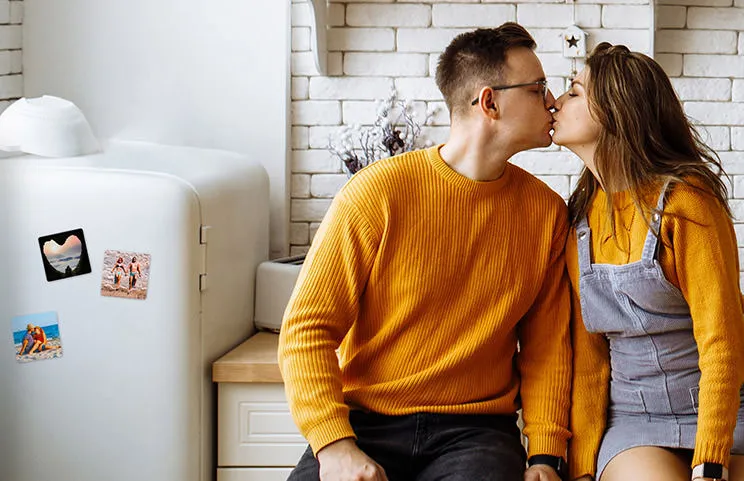 Upload your photos directly from your device, online storage, or social media. Then use our simple design suite to edit your square fridge magnet however you wish.