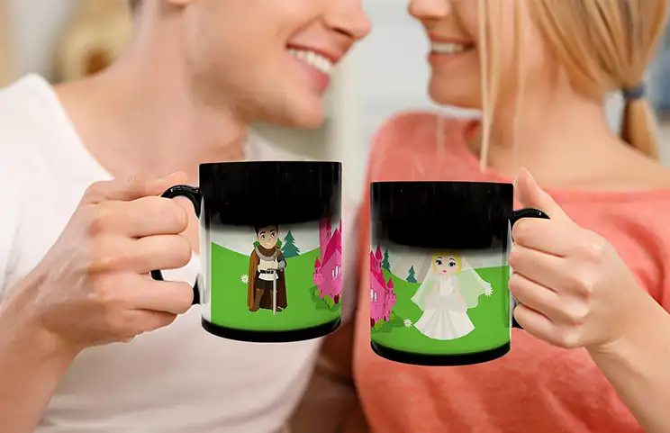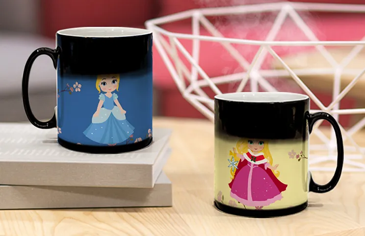 Our magic mugs are crafted from high-quality, durable ceramic coated with a special heat-sensitive layer. Although we offer cheap mug printing, we never compromise on the quality of our materials. To protect the magical reveal effect and ensure its longevity, we strongly recommend hand-washing only. The mugs are not microwave safe. This makes them fantastic gifts, such as unique personalised Christmas mugs that offer a warm surprise during the holidays.